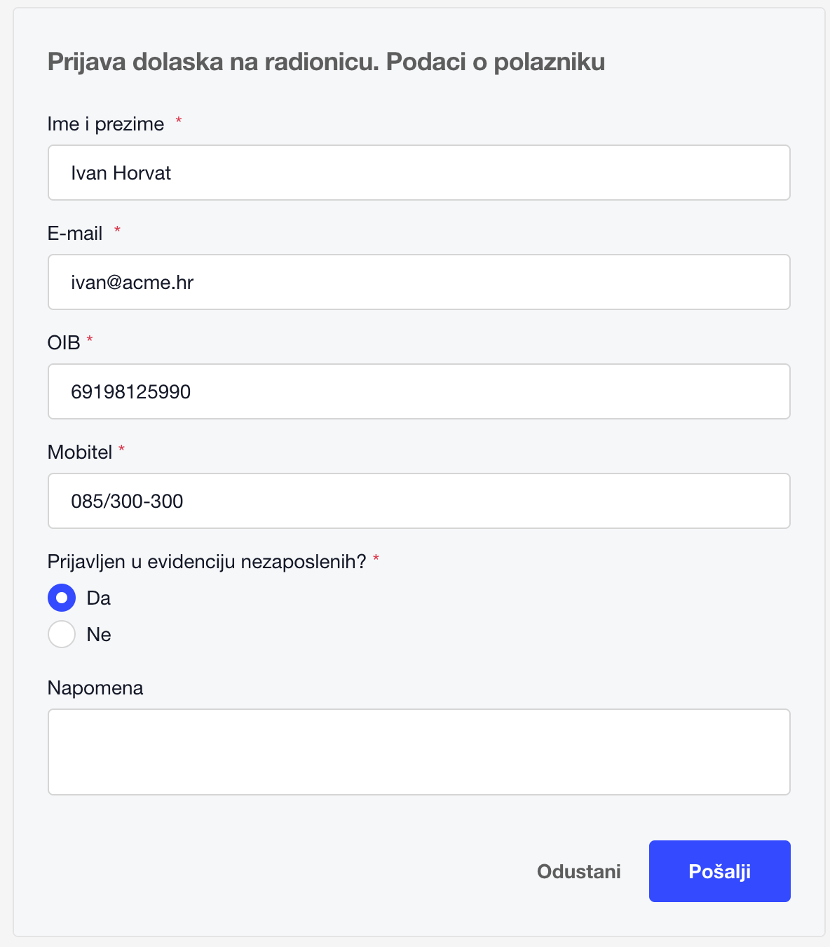 Ispunite tražene podatke na prijavnom obrascu i kliknite gumb "POŠALJI"
