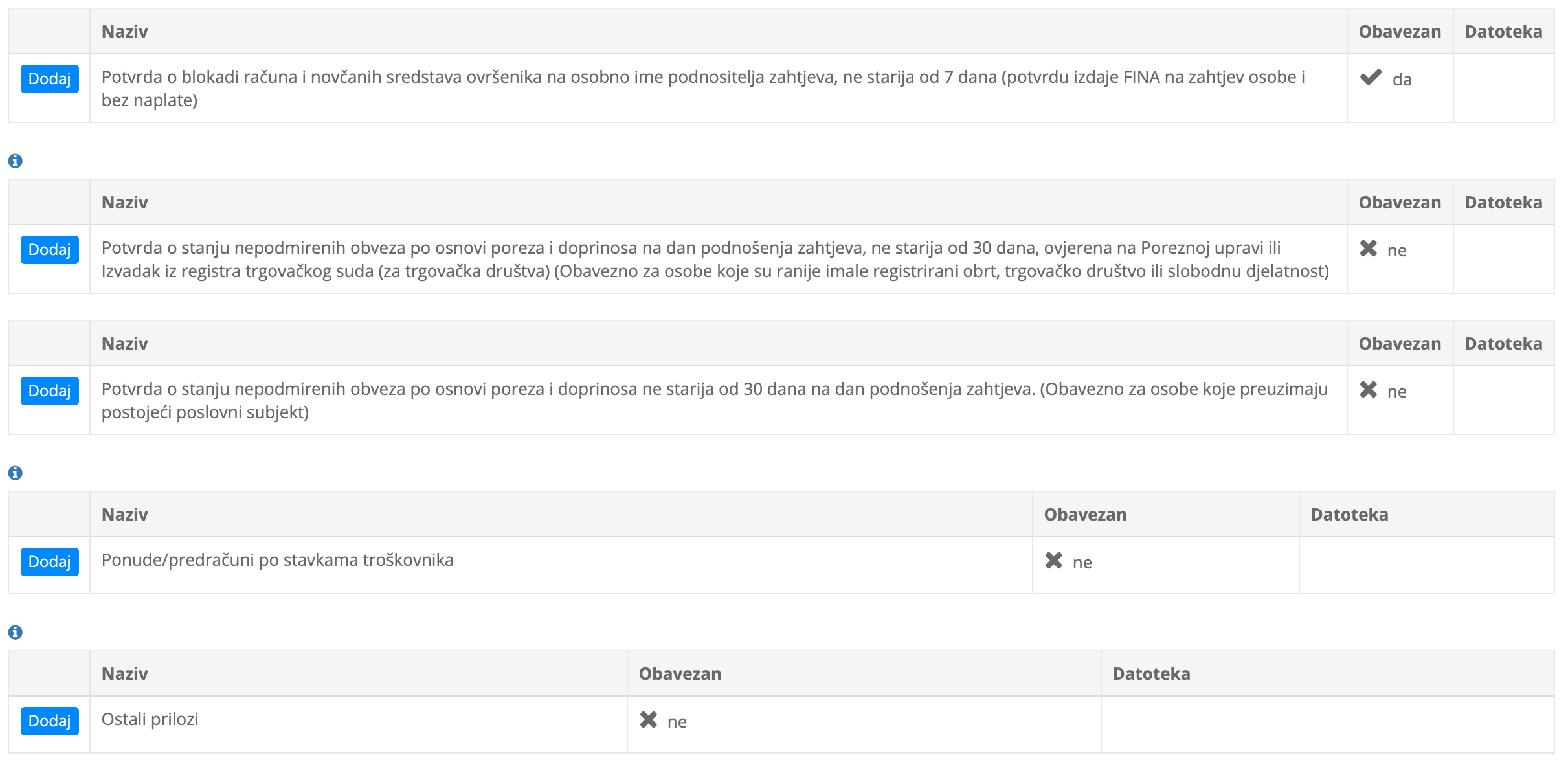 Proučite sekciju provbedbenog dokumenta naslovljenu "Dokumenti s drugih izvora koje trebate priložiti" - sadrži popis dokumenata koje morate pribaviti iz drugih izvora te ih učitati kao prilog uz zahtjev. Ako dokumentacija nije dostupna u digitalnom obliku, skenirajte ispisani dokument i spremite ga u PDF obliku za učitavanje uz obrazac.