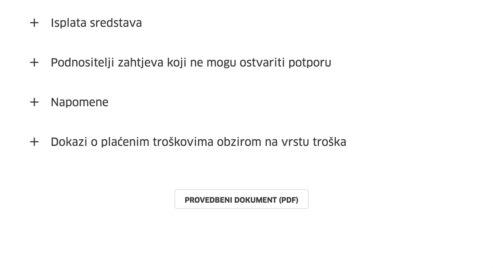 Za svaku mjeru dostupan je PDF format opisa mjere koji možete preuzeti pritiskom na gumb "Provedbeni dokument (PDF)".