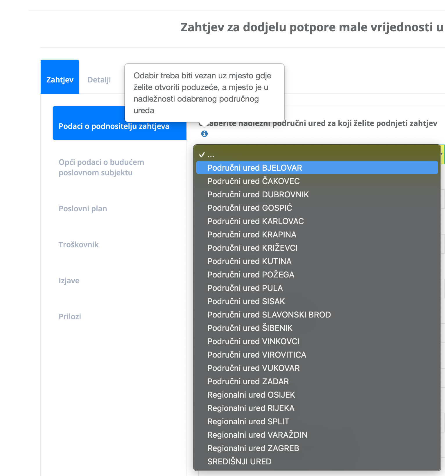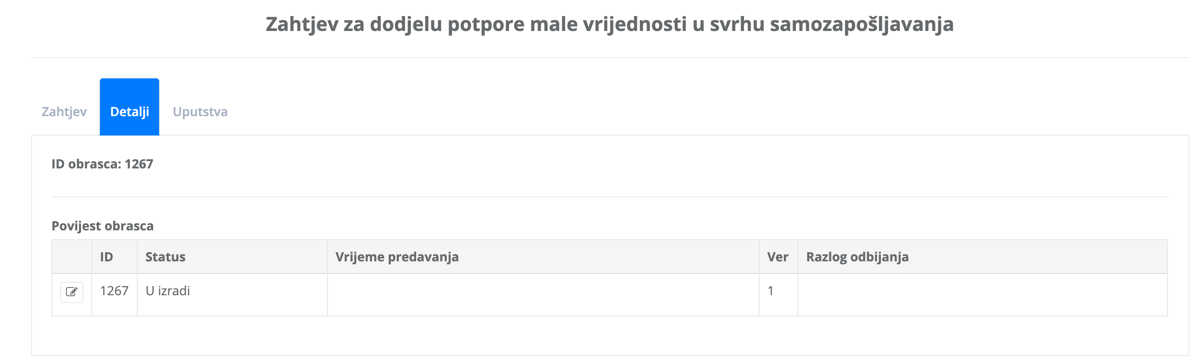 Kliknite jahač Detalji za informacije u kojem je statusu predani zahtjev. Također, ovdje možete saznati razlog odbijanja predanog zahtjeva, uključujući i informaciju da nadopunite zahtjev kako bi se završila obrada.