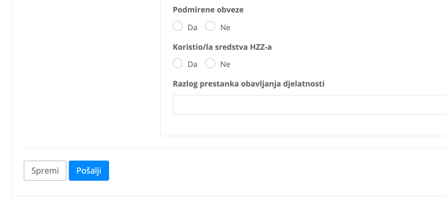 Kliknite na gumb SPREMI na dnu obrasca za spremanje unosa, bez slanja zahtjeva na obradu.